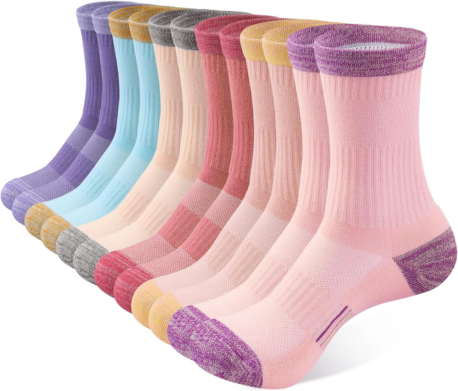 Crew Socks for Women Hiking Athletic Running Walking Cushioned Compression Cotton Socks 6 Pairs